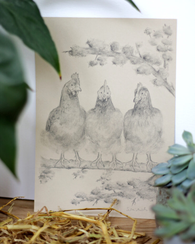 Diese Bilder hier sind Beispiele – kleine Momente aus Garten, Natur und Permakultur, von Hand gezeichnet.